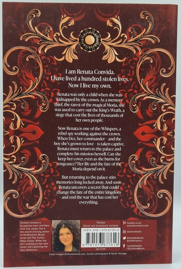 Renata was only a child when she was kidnapped by the crown. As a memory thief, the rarest of the magical Moria, she was used to carry out the King's Wrath, a siege that cost the lives of thousands of her own people.