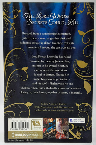 Lord Phelan knows he has risked discovery by rescuing Juliette, but, in spite of his cynical heart, he cannot resist the mysterious damsel in distress. Placing her under his personal protection - and his roof - Phelan vows no one shall hurt her. But with deadly secrets and enemies closing in, their future, together or apart, is in peril...