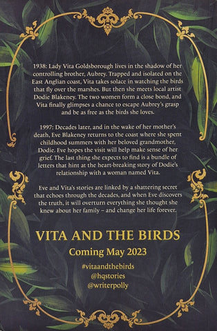 1938: Lady Vita Goldsborough lives in the shadow of her controlling brother, Aubrey. Trapped and isolated on the East Anglian coast, Vita takes solace in watching the birds that fly over the marshes. But then she meets local artist Dodie Blakeney. The two women form a close bond, and Vita finally glimpses a chance to escape Aubrey's grasp and be as free as the birds she loves.